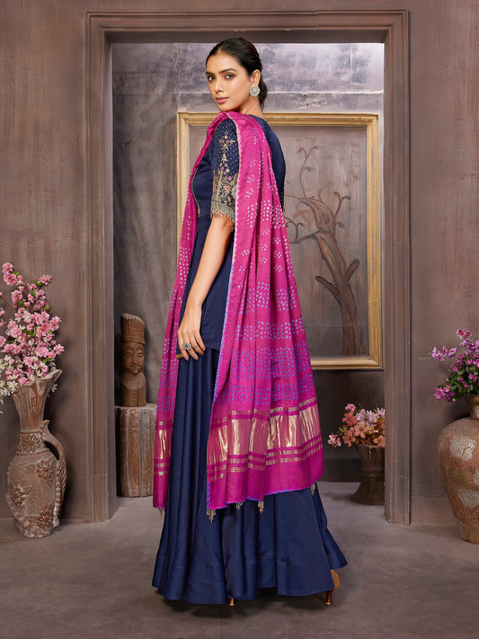 Handcrafted Satin Silk Kurta with Palazzo and Rani Pink Bandni Dupatta