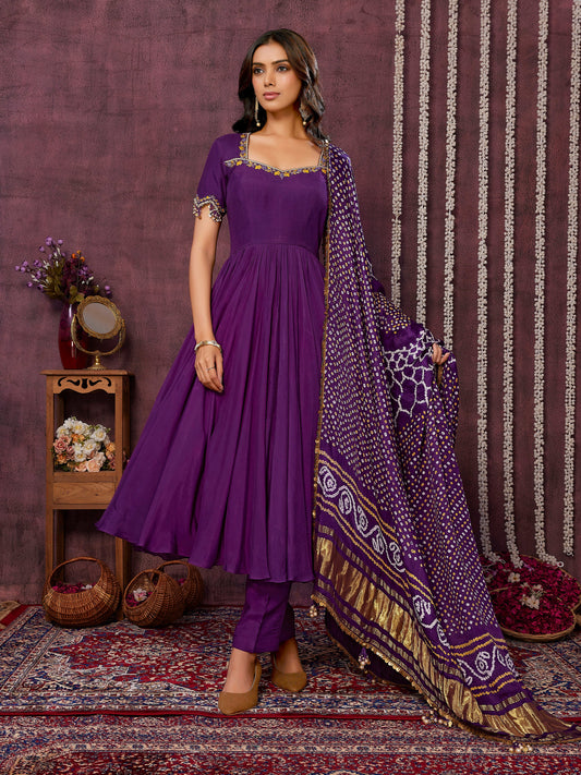 Purple Anarkali Set with Bandni Dupatta