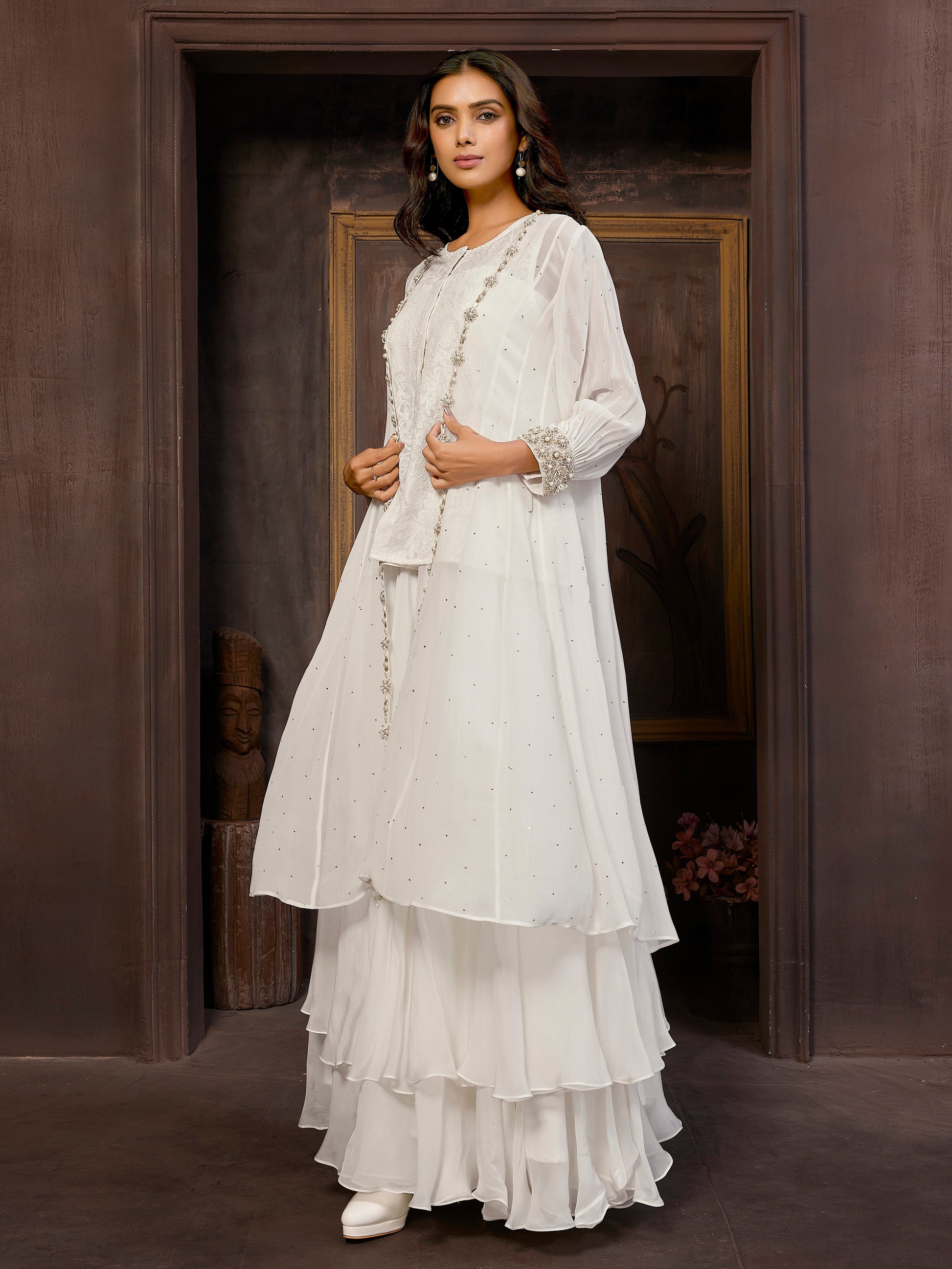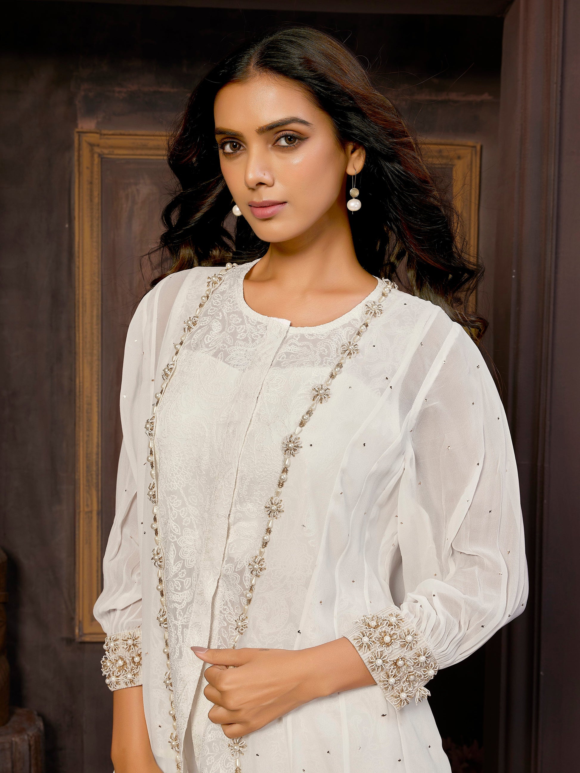 Elegant White 4-Piece Pure Georgette Indo-Western Dress