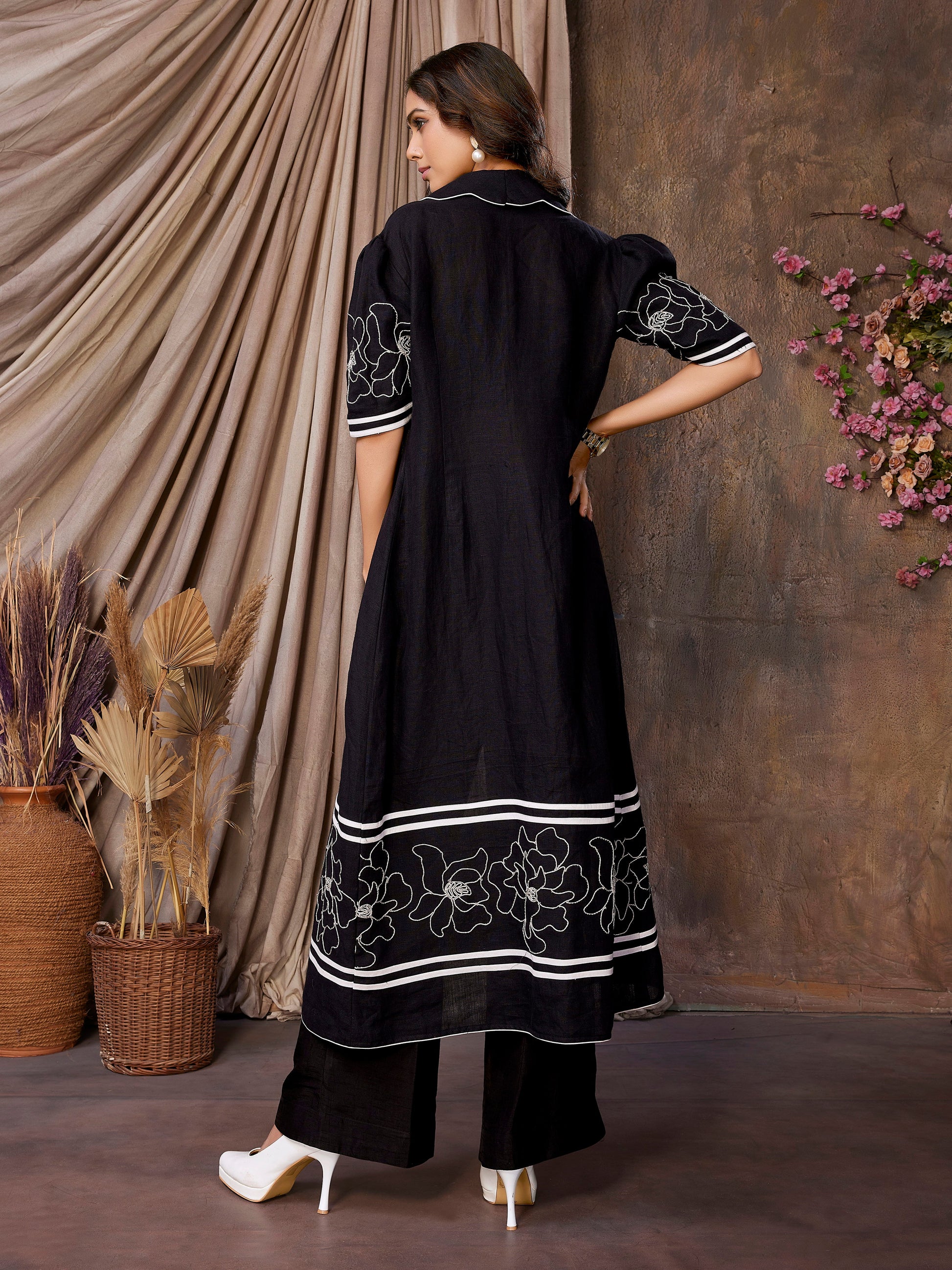 This Black Pure Linen 3-Piece Set combines elegance and modernity, offering a timeless outfit that redefines sophistication.