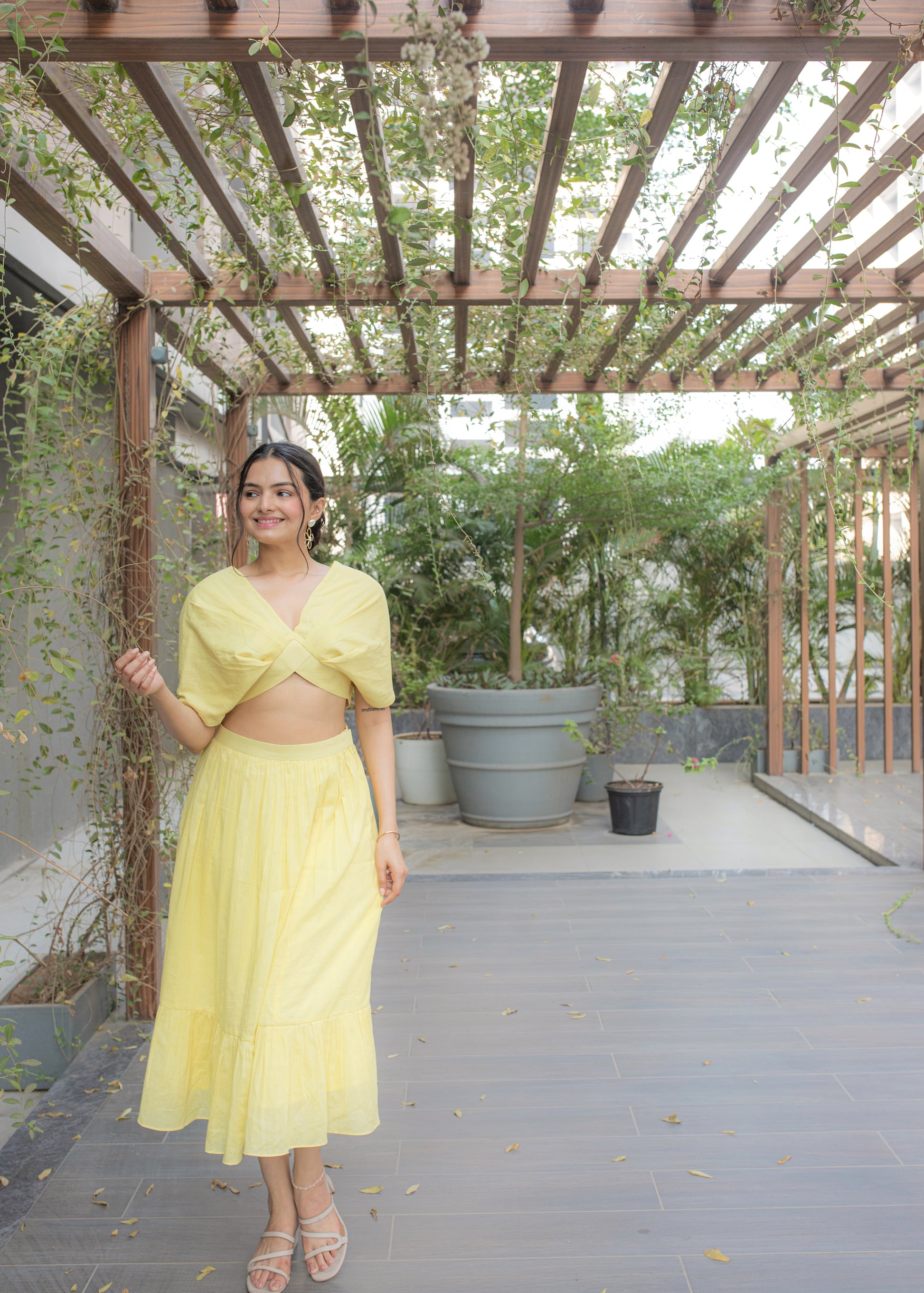 Wrapped in sunshine! This chic cropped top is all about easy and airy allure. 💛