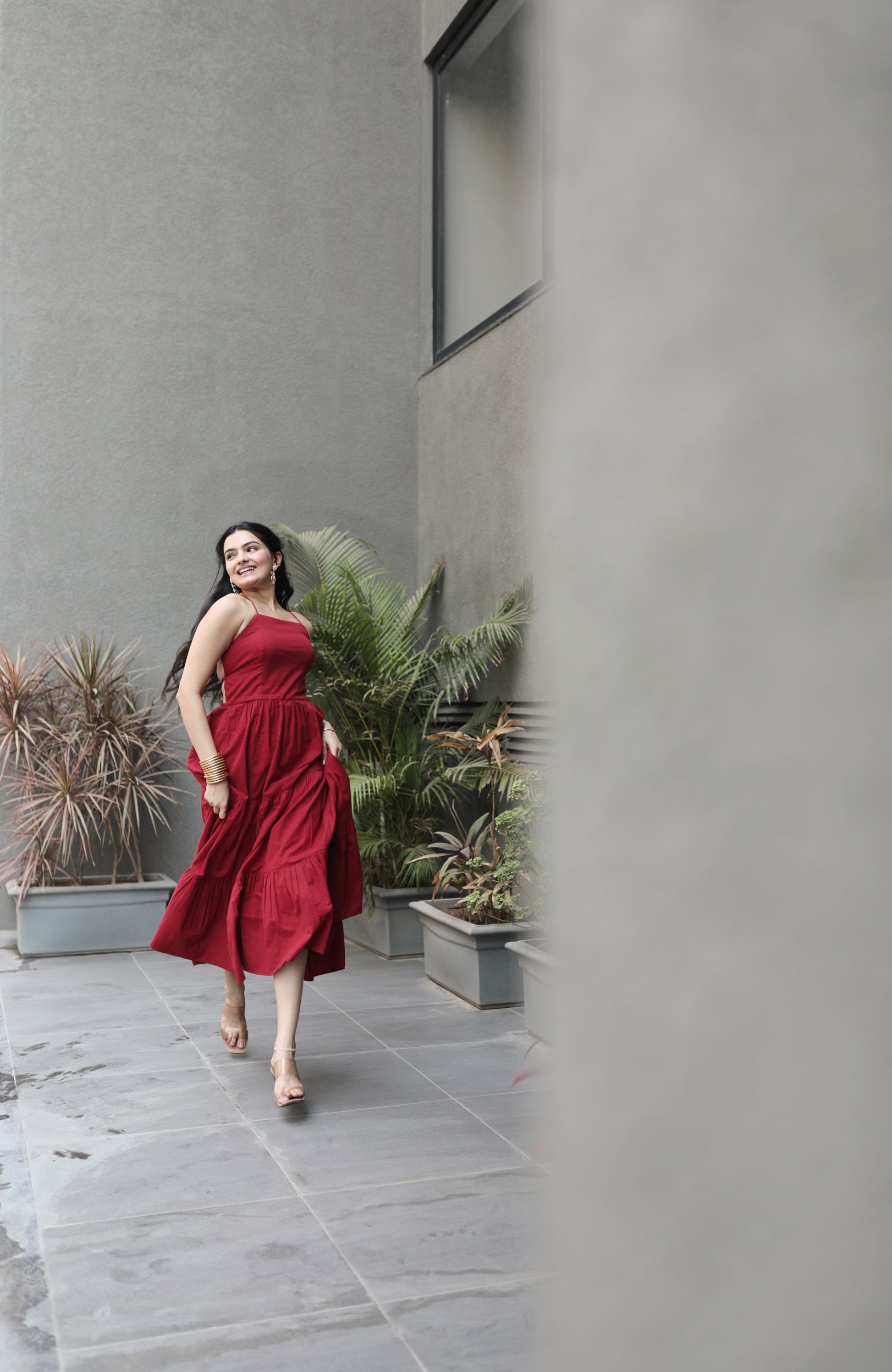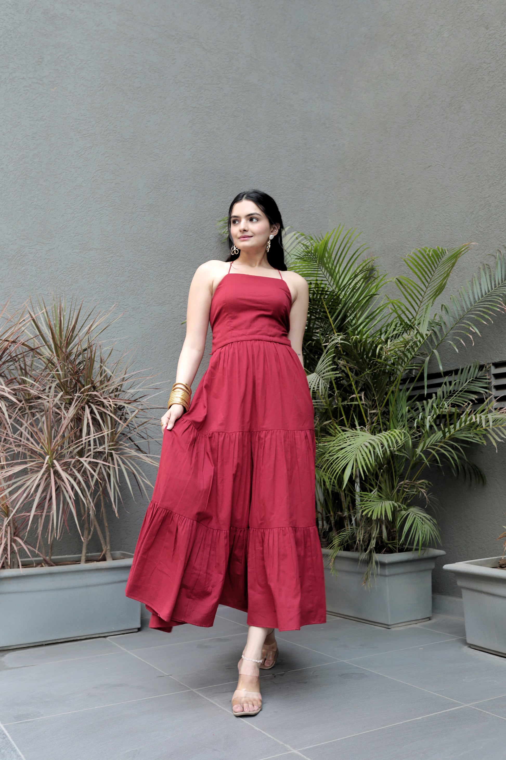Detail: Tie-up back | Adjustable Straps | Flowy maxi length